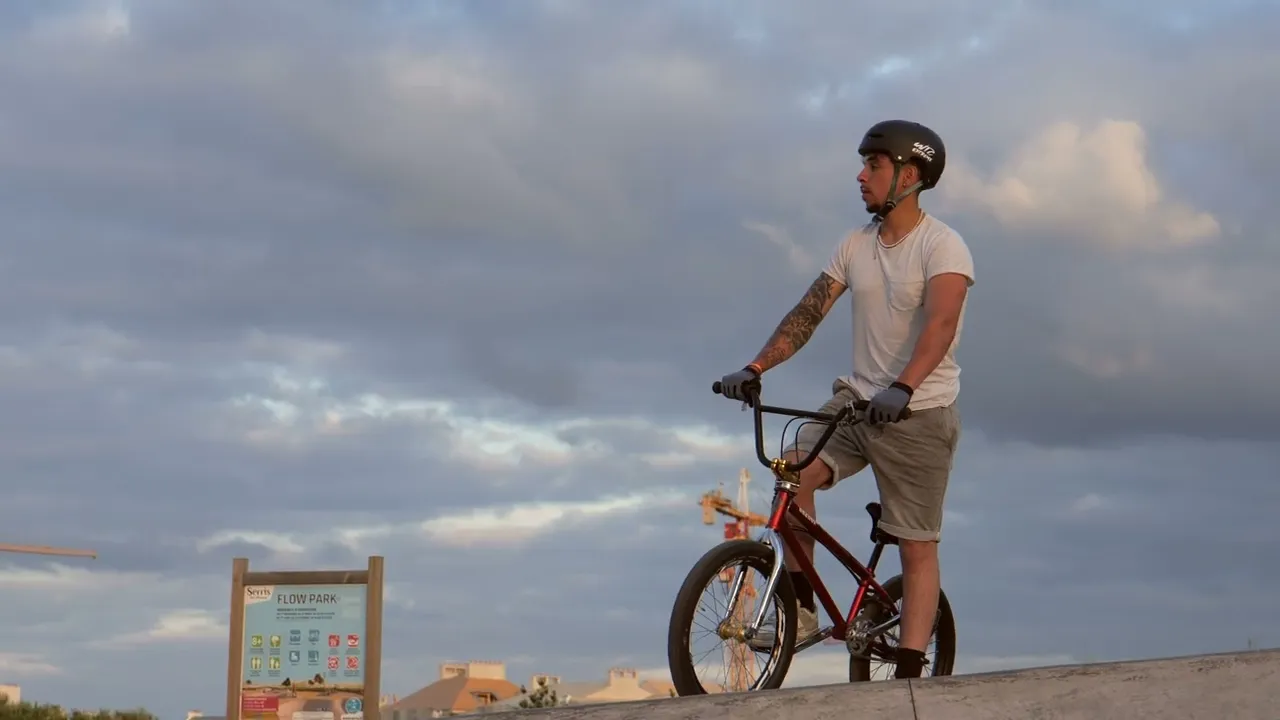 High-speed cinematography for dynamic action sequences (BMX). Paired with detailed, technical product photography focusing on material textures, design precision, and safety certifications.